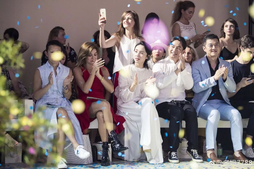 孙莉在为朋友们拍照,黄磊就看着她撒娇似的傻笑。