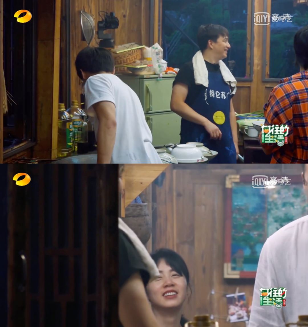 黄磊做饭的样子,孙莉已经看了20几年,但是何炅说:她看着他的眼神充满欣赏。