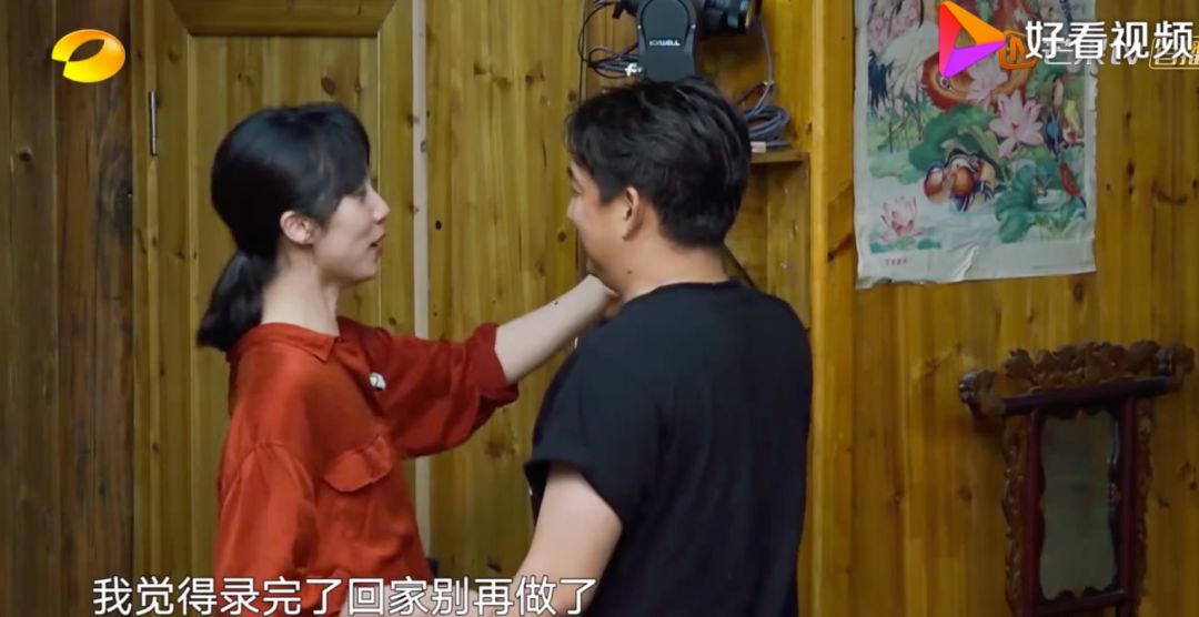 被黄磊撞破她在偷偷排练舞蹈,她整个人抱住黄磊让他离开。