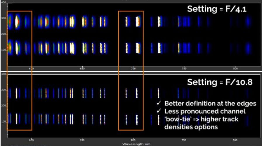 Less pronounced channel `bow-tie`=>higher track densities options.