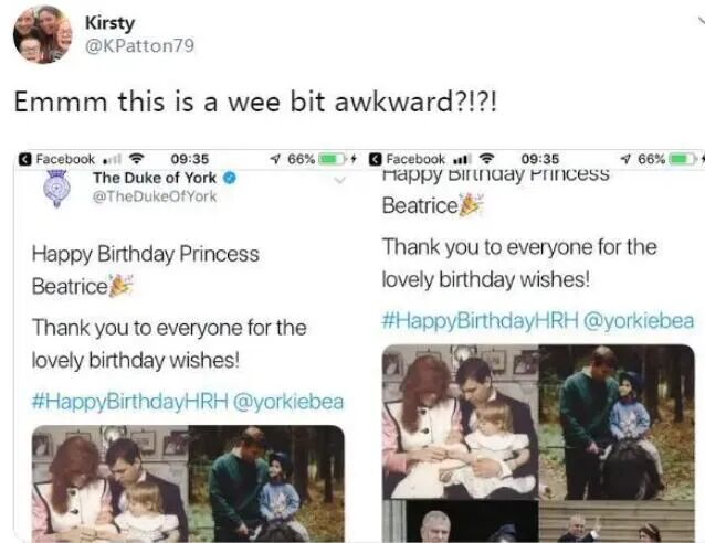 安德鲁王子本想发布大女儿碧翠丝的照片为其庆生,结果误发了29岁的尤金妮公主四张照片,其中一张还是尤金妮公主结婚当天拍的……