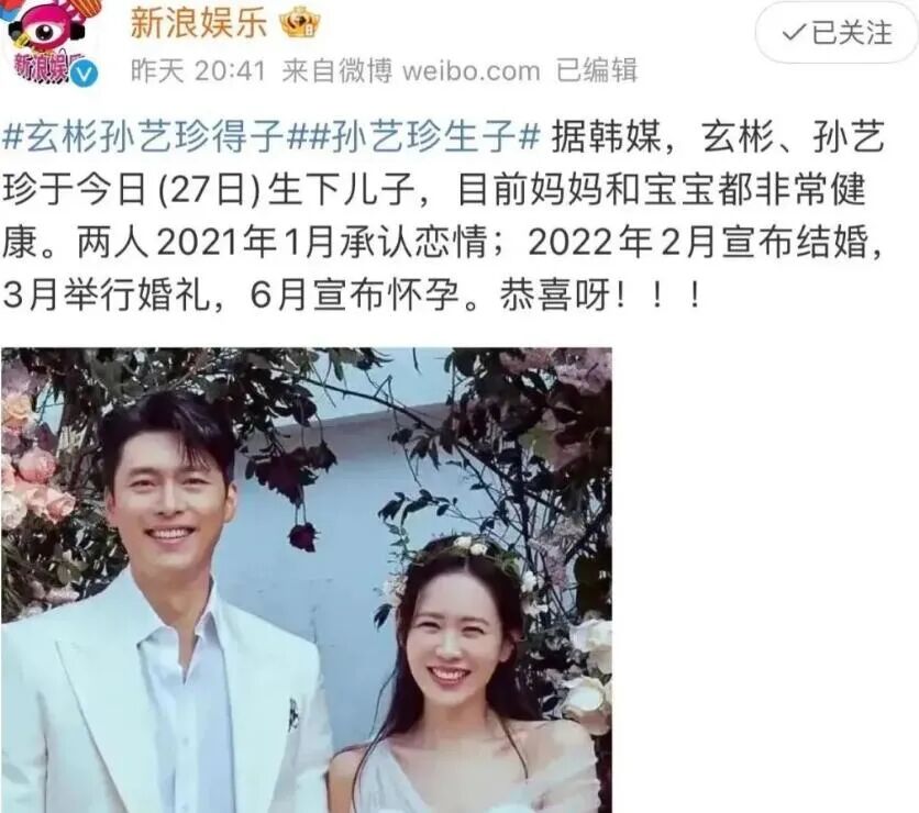 11月27日,被称为颜霸夫妻的孙艺珍玄彬对外官宣:儿子已经提前降生啦。