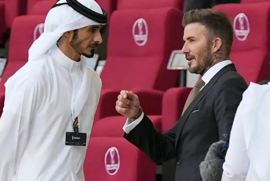 喏,就是下面这位和小贝在一起的大帅哥,传说中“馄饨皮王子”的哥哥,身高185,堪称帅过贝克汉姆的贾西姆王子↓