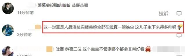 但比起两人高龄做爹妈,网友最关心的还是这对颜霸夫妻生的儿子,到底能帅成什么样。