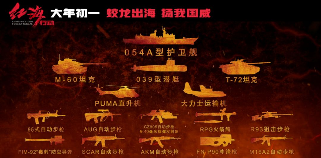 《红海行动》中,各式高精尖军事装备彰显我国当代海军实力,“最强海上带刀护卫”054A型导弹护卫舰、两栖登陆舰、039型潜艇、护卫舰上搭载的最新型1130近防炮,全部在片中惊艳现身,令所有中国人的安全感加倍。