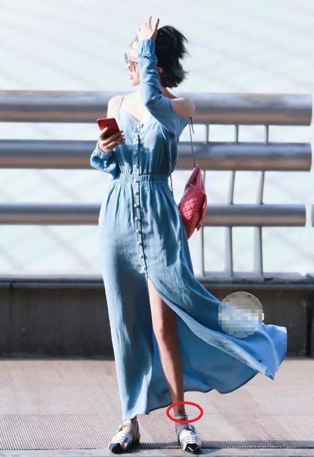 风吹开长裙,脚踝上和张若昀的情侣纹身又亮了。