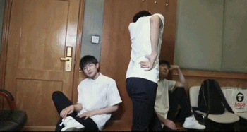 在学校参加完电影宣传,韬韬抱着楼梯扶手直接滑下去了.....