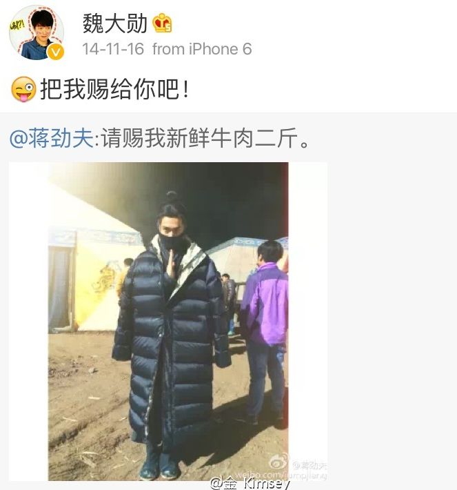 蒋劲夫发博称“赐我新鲜牛肉二斤”,魏大勋回“把我赐给你吧”!