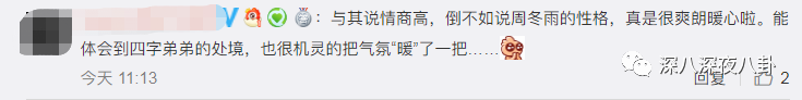 对不知情的吃瓜群众,小黄鸭这么一句话无疑是情商高的表现,高然评论区不少人都在夸周冬雨好聪明一女的,情商贼高