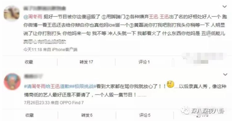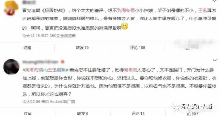 虽然王迅不断强调是节目效果,然并卵,网友们该骂骂还是骂,毕竟这事(从节目播出情况来看)确实是周冬雨做得不厚道