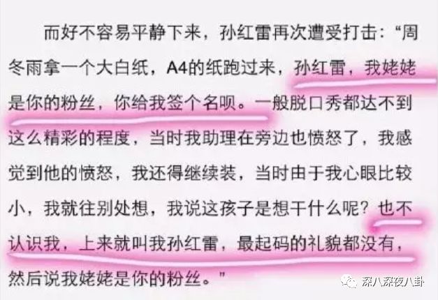 周冬雨曾与孙红雷一起演过一部电影叫《少年班》,当时在电影发布会上,周冬雨第一次见面就直呼孙红雷的大名,让他感到很不舒服