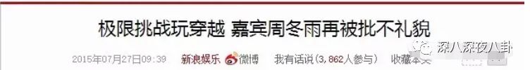 真正被疯狂吐槽情商低、没礼貌的还是当年周冬雨上《极限挑战》之后,当时她微博底下真的是被群众的口水给淹没了