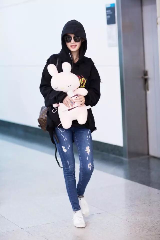 在看李沁穿搭前,咱们先来看看她手上粉丝送给她的小礼物吧,这是一只粉色的小兔子,可爱的模样,瞬间收获女神的芳心,妹子们也喜欢吧