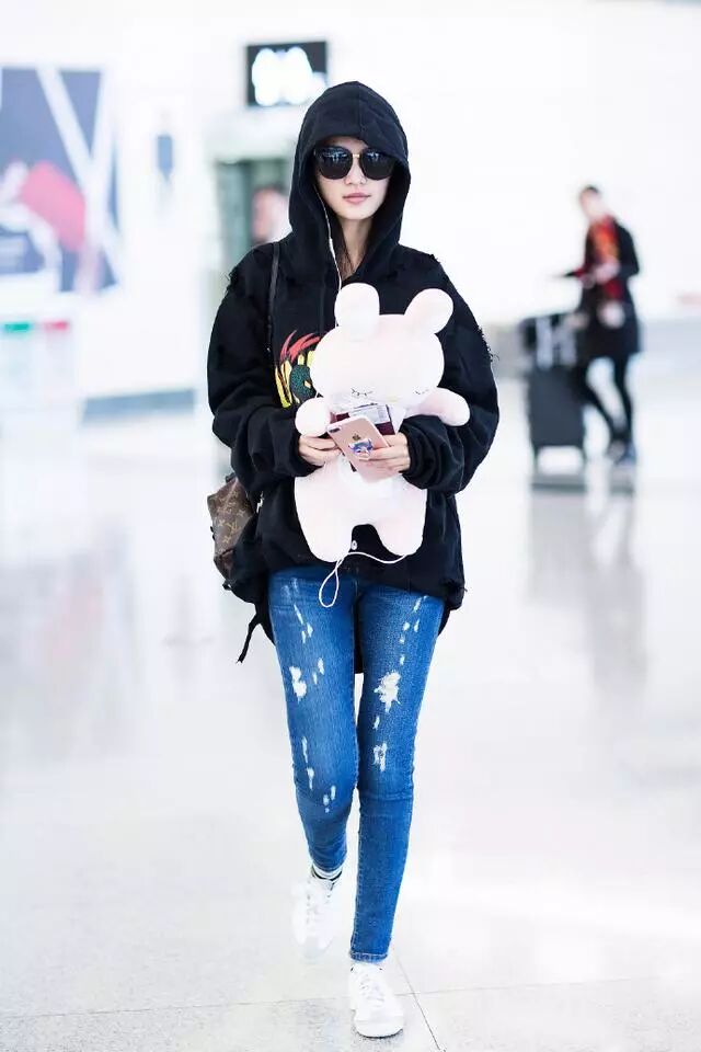 再来看看她的穿搭,这一身真不错,几款简约的单品,就可以轻松凹出型来,比如黑色元素的连帽卫衣,可以轻松凹出休闲范儿,不规则的设计,更具时尚的气息感,实用的不要不要的,妹子可以开始拔草了