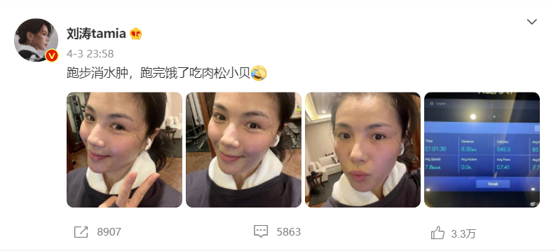 闺蜜秦海璐曾爆料,自己有时失眠,五六点给刘涛发消息,没成想到对方却表示“刚健身回来”。