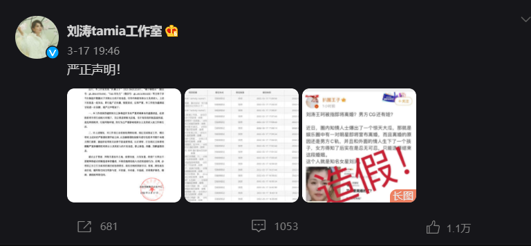 不像其他艺人只停留在口头警告,刘涛不光辟谣,她还搜集了所有的证据。