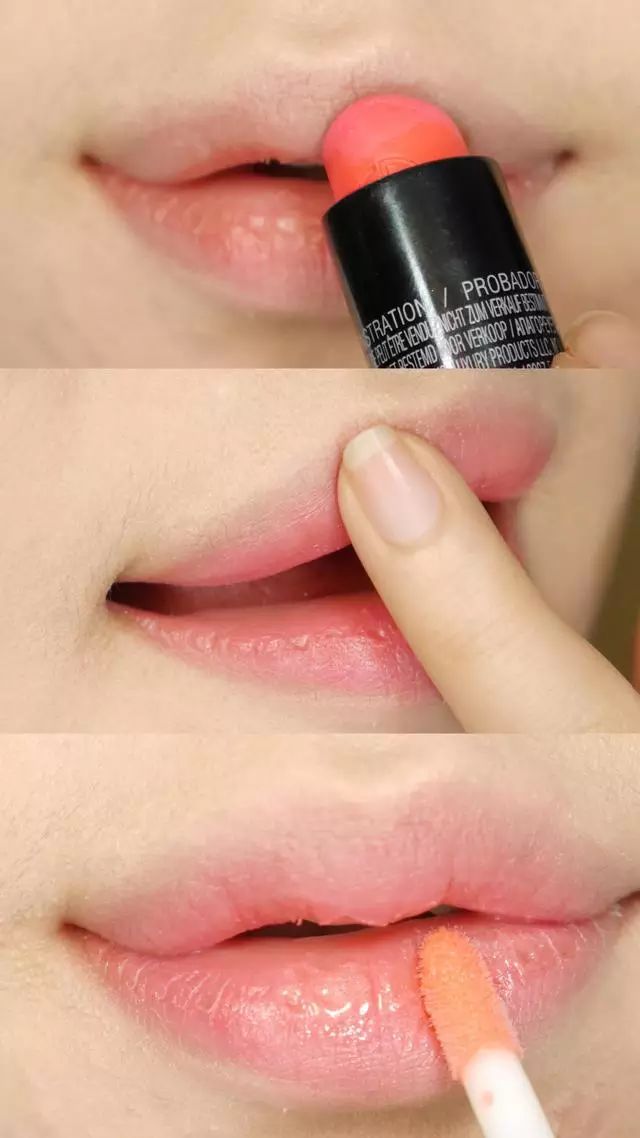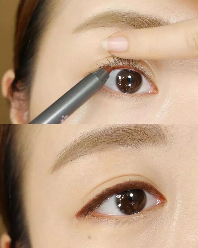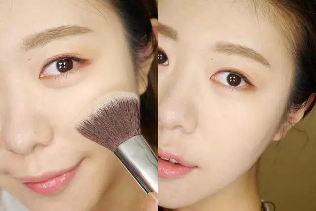 画上内眼线和细细的外眼线 若有似无的下眼线,怎么做?太简单了,在画好内眼线之后马上用力闭眼吧 超自然的下眼线GET,5s之后就会干掉所以速度要快哦,干掉之后就不会掉咯! 然后先涂最浅色打满眼窝,叠在在双眼皮褶皱处,coffee ground加在眼线处,然后是珠光的打在眼头部位 然后刷上睫毛膏,就搞定眼妆咯! 眼部完妆照 按咬唇妆的画法,用手指轻点,然后叠加唇彩,打造自然粉的唇色。 淡淡刷一层就有好气色,还有修饰脸部轮廓的效果,造型搞定!~~