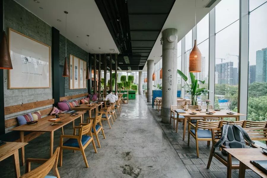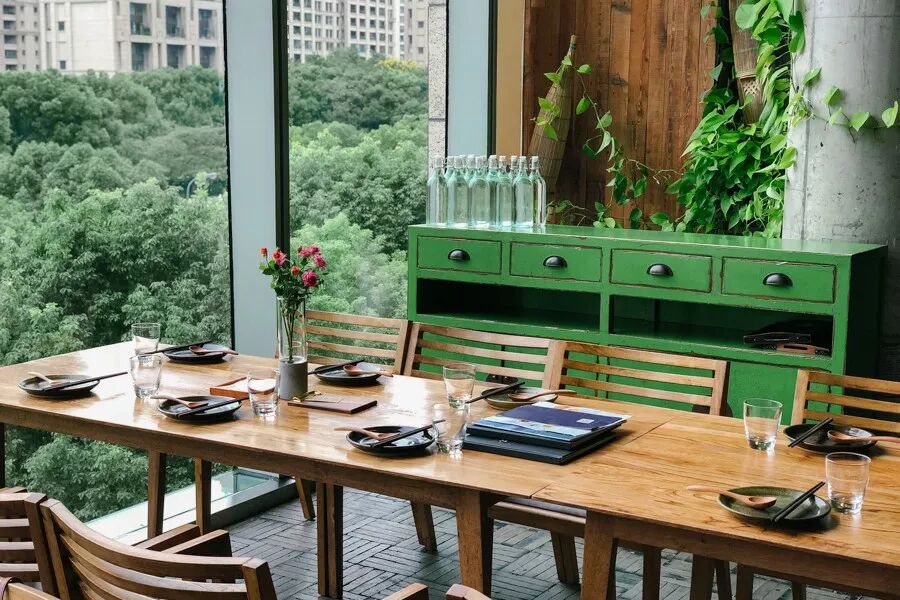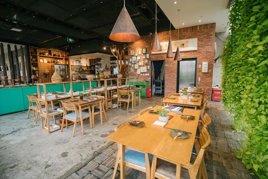 就好像一个困在灰蒙蒙雾中的人,得到了喘息,从上到下的毛孔都张开来沐浴着新鲜空气……一整面的落地窗、一整墙的青翠绿植、一尘不染的木桌椅,角角落落都让人舒适。