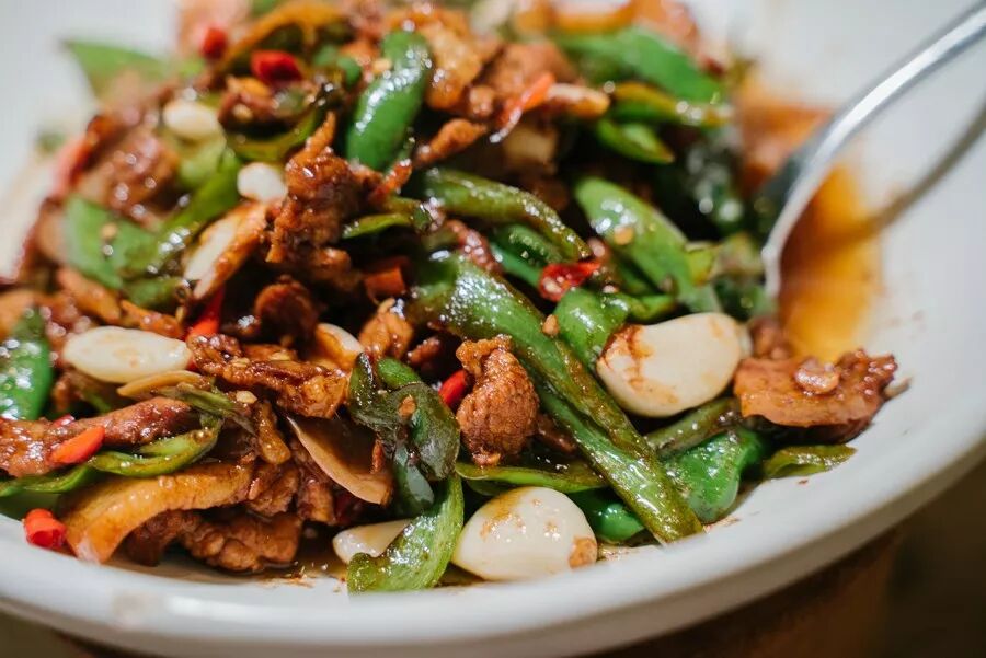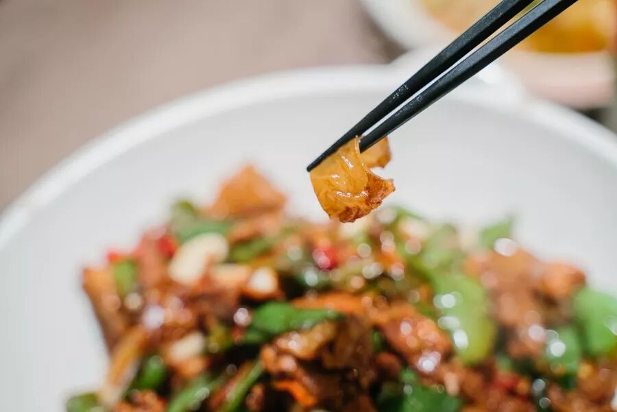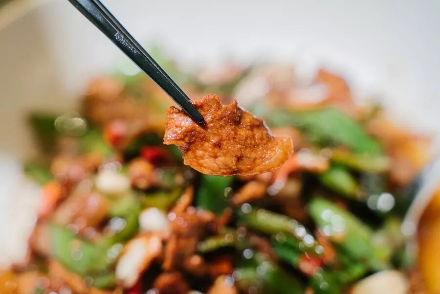 菜品的成色很诱人,端上来的那刻,闻着味儿你就知道这菜肯定好吃。肉片在汤汁里滚的香热入味,青椒脆辣提鲜,锅气十足。