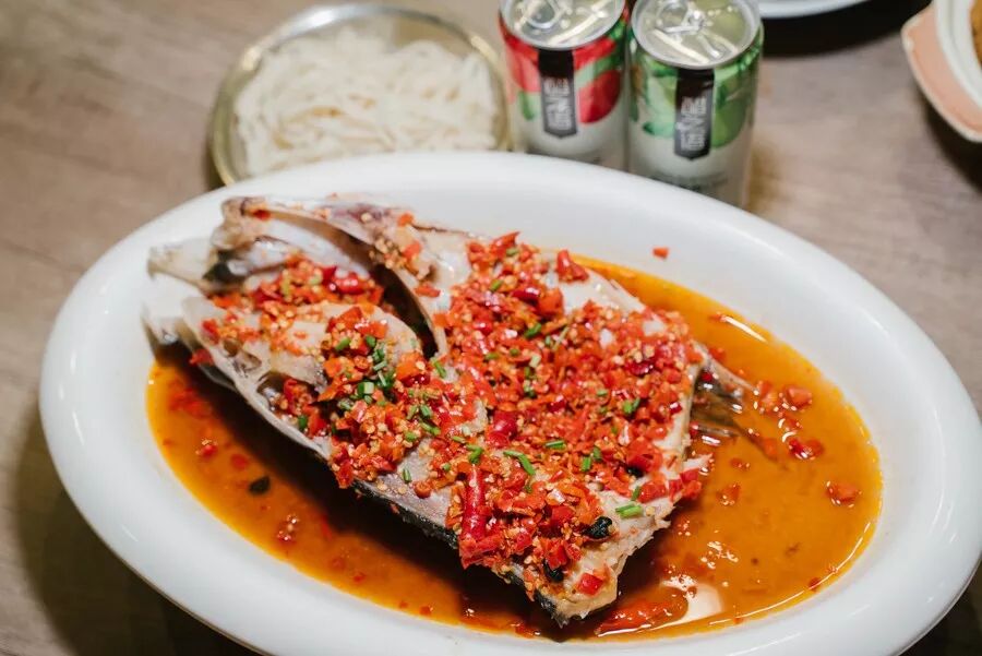 鱼头有一股土腥味,鱼肉有些散,无味。而汤汁过咸,辣味完全没有融在里面,味道很分离。