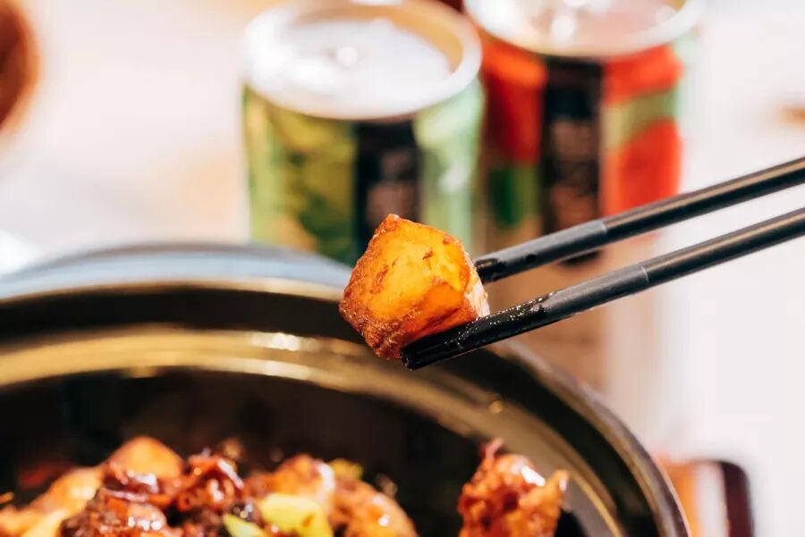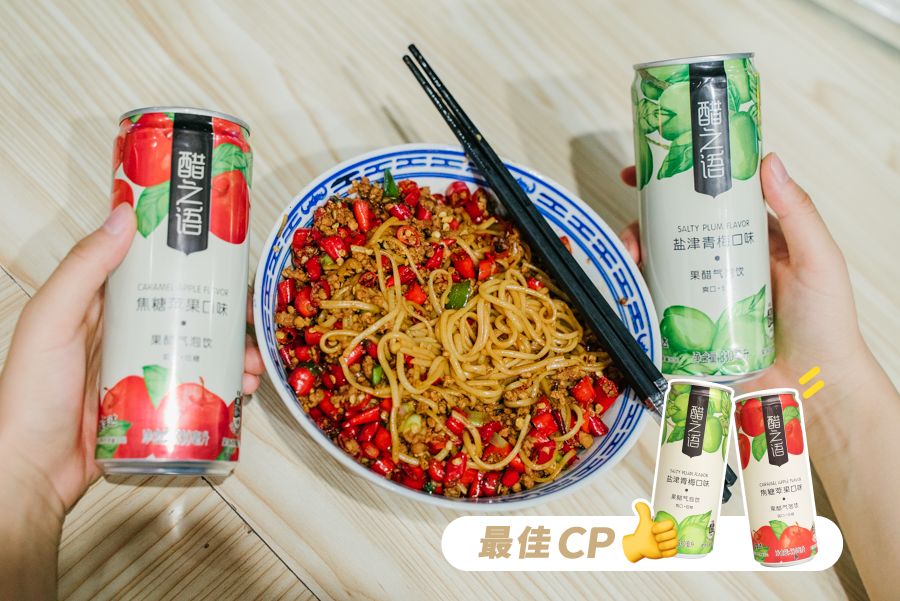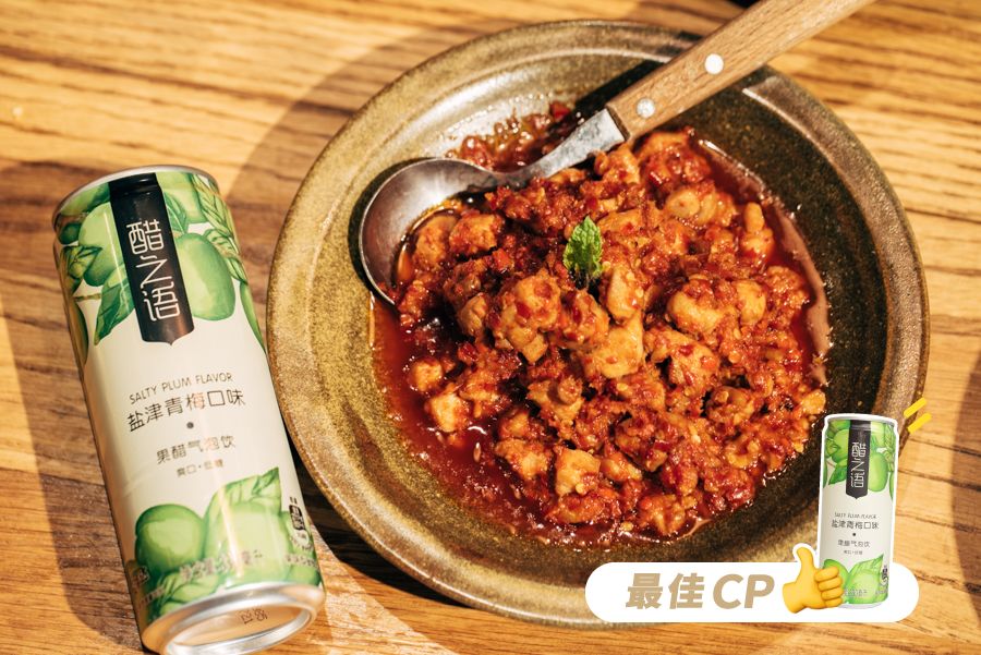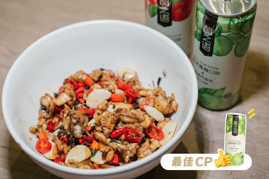 炒贵州辣子鸡,油一般用的很足,所以多吃难免觉得油腻~这时候,一定要来一罐儿盐津青梅口味的醋之语,那种让人口舌生津的酸完全冲洗掉了嘴里的油腻感,酸甜的回味平衡了味蕾,特别爽~
