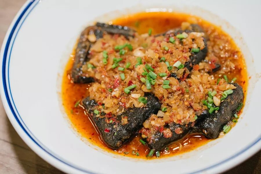 把娃娃菜拌开来,浸润在红油汤汁里,才是这道菜正确的吃法,脆嫩多汁还带点甜味的娃娃菜,特别爽口,再搭配麻油香辣的汤汁,绝对给你不同的素菜体验。