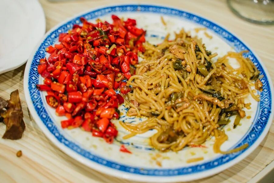最后一碗,终极挑战。满满当当的辣椒,面都看不见了。牛肉末还蛮多的,和辣椒不分你我,这回挑都没法挑了。