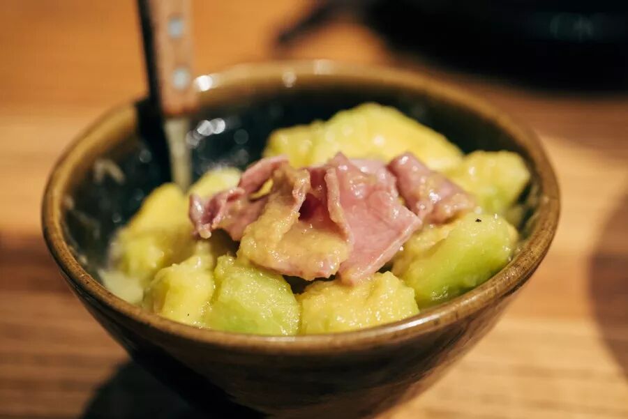 云腿咸香回甘,吊住了鲜味~我是第一次吃姜饼瓜,和南瓜的软烂不同,它微微有一些纤维感,酥而不烂,很奇妙。口味较清淡,吃得出姜饼瓜本身的清香,很赞。