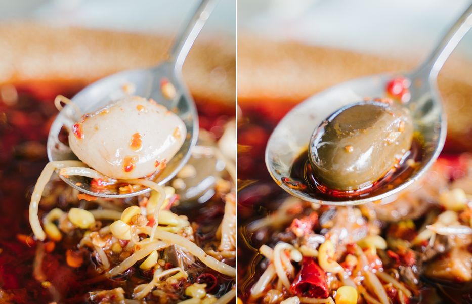 如果看到你被辣哭了,老板娘会贴心送来解辣的小菜和陈皮糖。