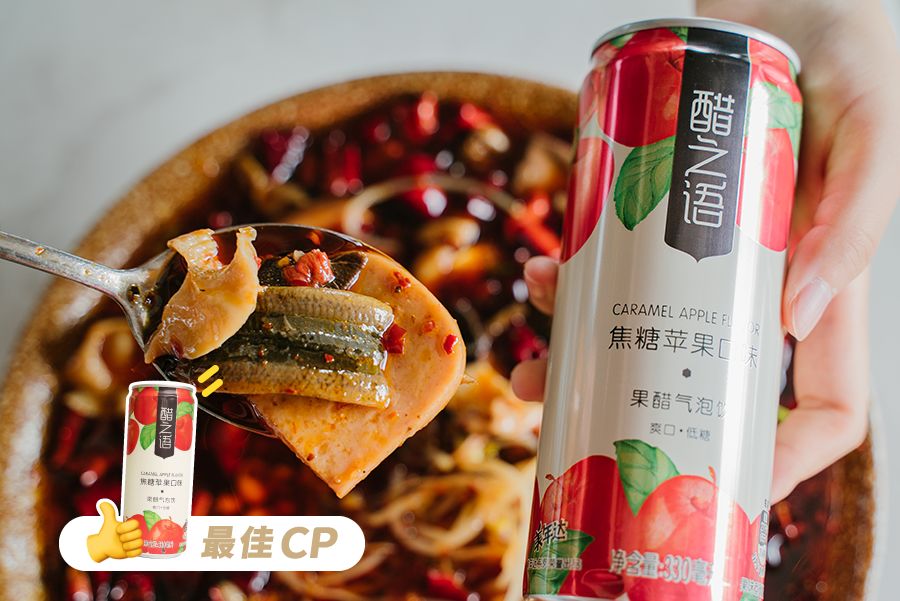 不能吃辣的A探员,全凭焦糖苹果味的醋之语顽强抵抗着,酥麻气泡洗刷完舌头,留下淡淡的熟透苹果味,又能再吃一筷子了!