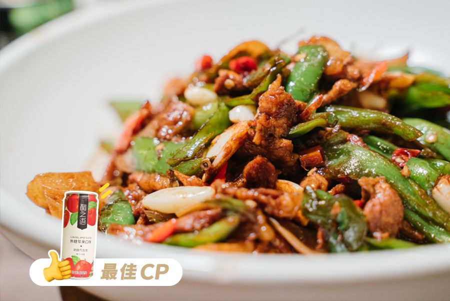 非要说不足嘛,是略油了一些,然后偶尔会嚼到特别酸的豆角,所以跟焦糖苹果口味的醋之语特别搭,解油腻不说,果醋的甜酸也能很快止住豆角的咸酸。