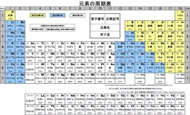 这里有一个活生生的例子,我们的老朋友日本。日本在发明的假名的文字书写方式后,几乎所有的外来专有名词都用片假名拼出,虽然说这样做有很大的灵活性,瞬间就可以吸收大量外来词语,但是…这跟没翻译之前有什么区别啊!于是,他们的元素周期表是这样的。