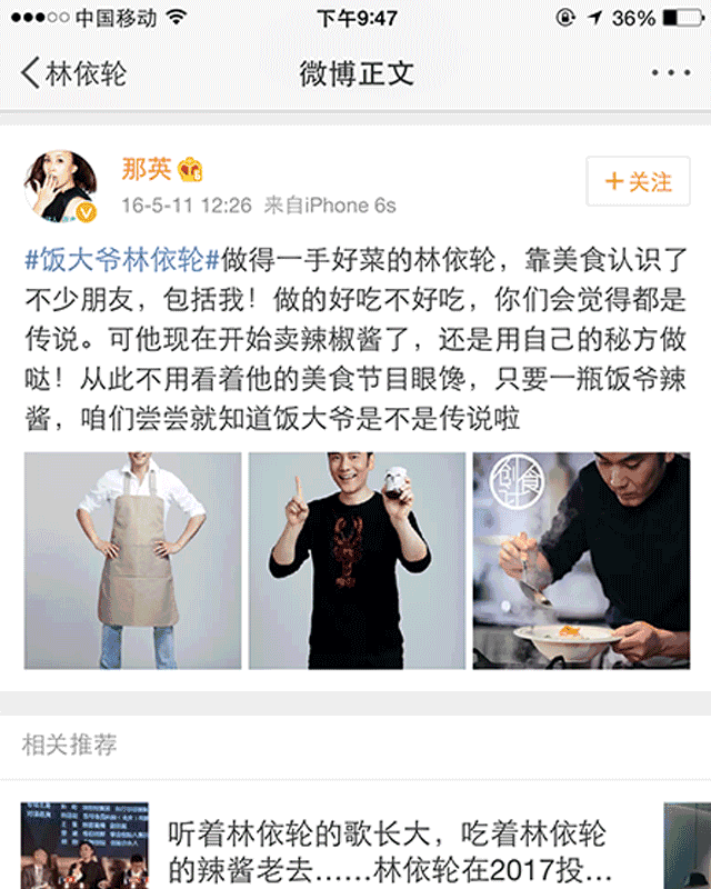 看来林依轮的目标是整个调味品市场啊,也许以后提到辣酱,饭爷和老干妈将难分伯仲啊。
