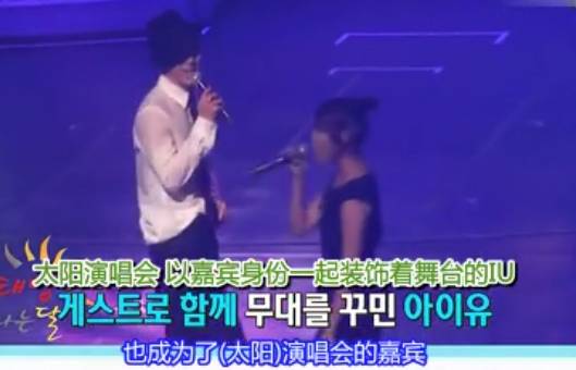 IU和太阳一起合作过特别舞台,还在台上亲了太阳的脸颊!
