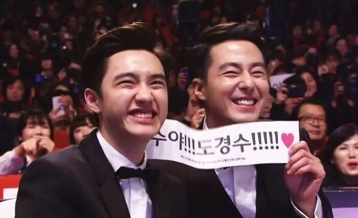 之后D.O.凭借着出演《没关系,是爱情啊》认识了偶像赵寅成,还成功地打入了赵寅成的好友圈。大写的人生赢家啊!