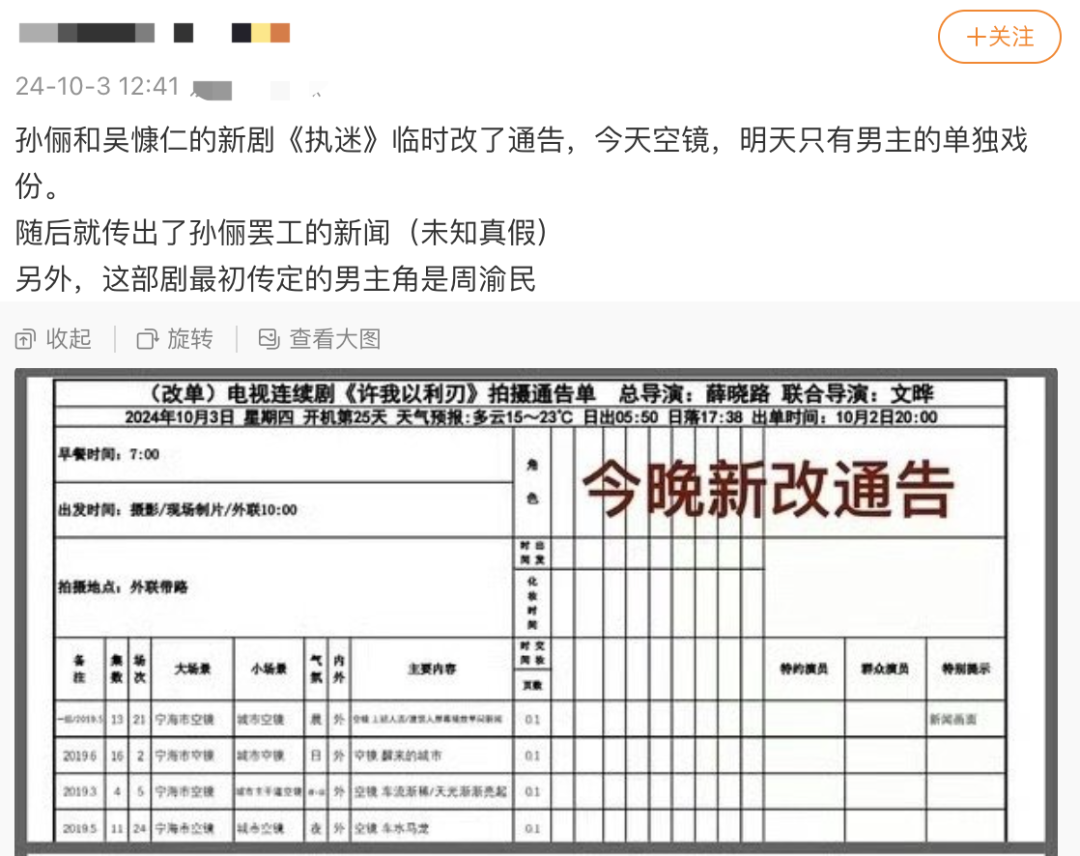 接着就传出和吴慷仁一起拍剧的孙俪罢工的新闻,不知真假。