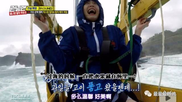全昭旻为了能让李光洙品尝到当地水果,在完成任务的过程中将水果小心翼翼滴藏在怀中