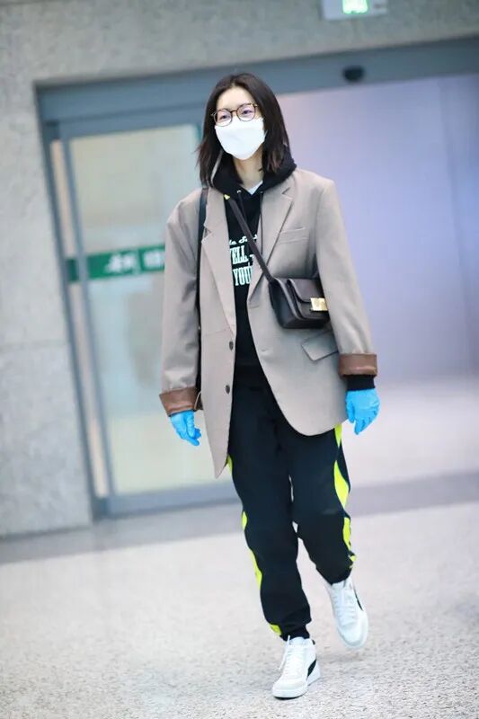 集美们若选择穿着稍显夸张的宽肩西装,那在搭配下装时,可以打破“上宽下窄”的搭配法则,试想任家萱若将这套造型中的配套阔腿裤换成一条紧身打底裤,那得多怪异啊。这时候反而要搭配宽松的下装来调和上身的宽大感,避免“头重脚轻”,比例失调。