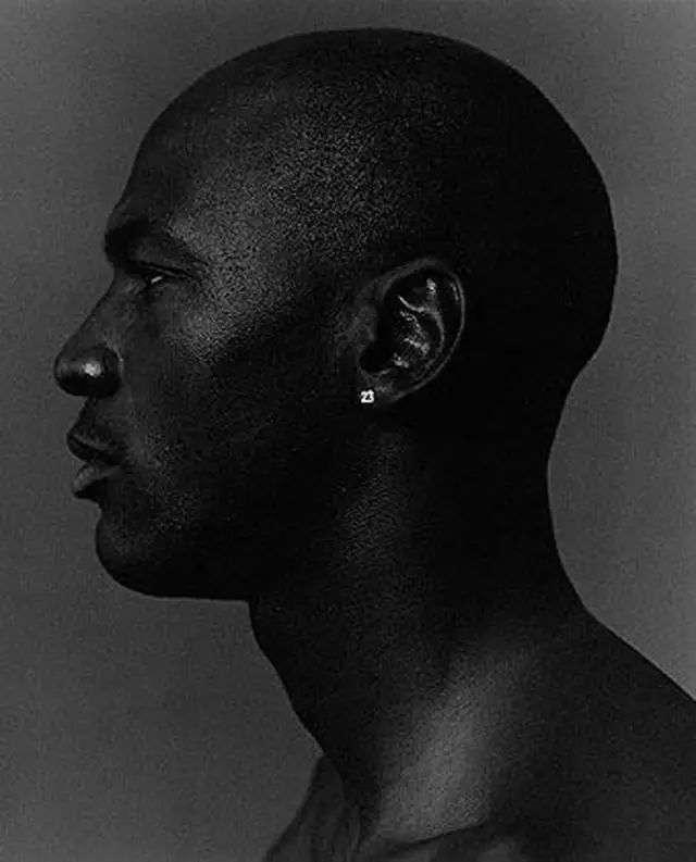“飞人”乔丹黝黑的肤色和钻石耳钉光芒相映