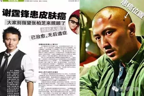 香港著名影星谢霆锋在拍摄电《十月围城》时,饰演一位剃了光头的角色。剃头之后,发现头上有一颗黑痣,但他没觉得奇怪。后来, 他再次剪短发的时候,发现黑痣变得很大!于是他去医院检查,医生告诉他,这不是一颗痣,而是一个黑色素瘤,是皮肤癌的一种。不过幸好他发现得早,可以用手术解决,后来谢霆锋做了手术,还缝了5针。