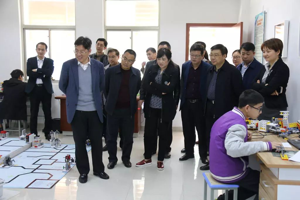 在学校江苏省机器人创新实践课程基地,来宾们与王金云老师亲切交谈,深入了解了学校机器人教育的发展历程。学生在活动中展现出的批判性精神及创新能力也给参观者留下了深刻的印象。