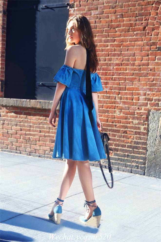 丹宁牛仔连衣裙也算Totally,依旧的甜美可人。