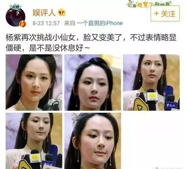 早前杨紫就曾经怼过营销号,尴尬的角度,尴尬的表情,都会导致给人整形的错觉。