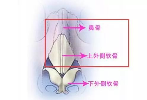 那么问题又来了,捏脸也好,做猪鼻子也好,说的就跟填东西了就不能碰了似的,现在已经很多人不要求填充假体了,反而选择了更加自然的玻尿酸,甚至是自体脂肪了。以鼻子为例,小编画框框的位置是不能动的部分,最下面的下外侧软骨是我们的鼻子中比较软的部分。