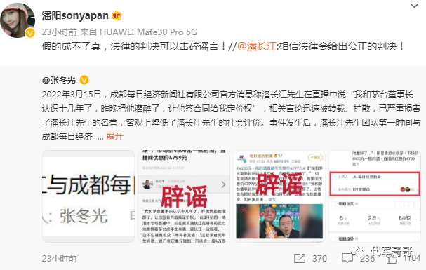 4月6日,律师张冬光在个人社交媒体上发文,成都每日经济新闻有限公司发布的“潘长江灌醉茅台酒厂董事长获得定价权”相关言论已经严重侵犯潘长江名誉,至今未向潘长江道歉,为此,潘长江已经委托北京京师律所,提起诉讼。同时张冬光还晒出了诉状的截图,截图显示,该诉状提交于4月2日,处于待审核状态。相信很快就会进入正式的诉讼环节。