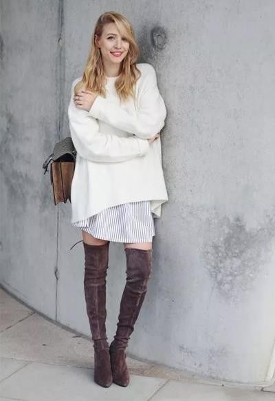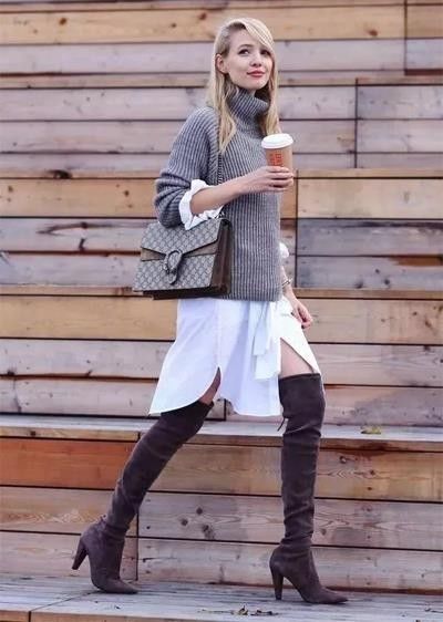 搭配长筒靴绝对是显瘦显腿长的好技巧,打造气质女神。