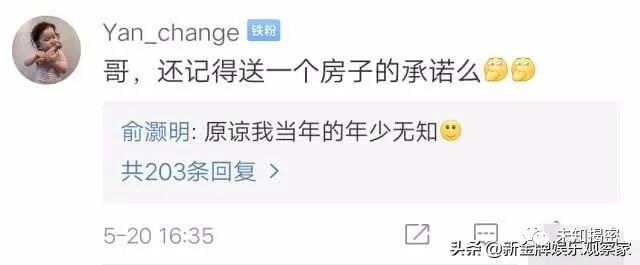 原来,俞灏明和魏晨关系非常铁,当年在一次采访里,俞灏明被主持人问到,如果魏晨结婚,俞灏明会送什么?俞灏明不假思索,直接说,我会送一套房子。结果这陈年采访被挖出来,王栎鑫直接在线催房,让俞灏明压力山大。