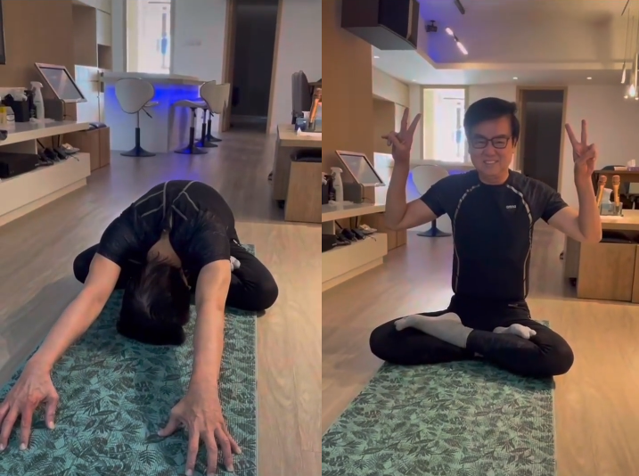 前段时间健身房和游泳池全部关闭,黄百鸣也并未因此而闲下来,反倒是另辟蹊径做起了瑜伽,在家中继续自己的日常锻炼,各种高难度动作都不在话下,很是认真。