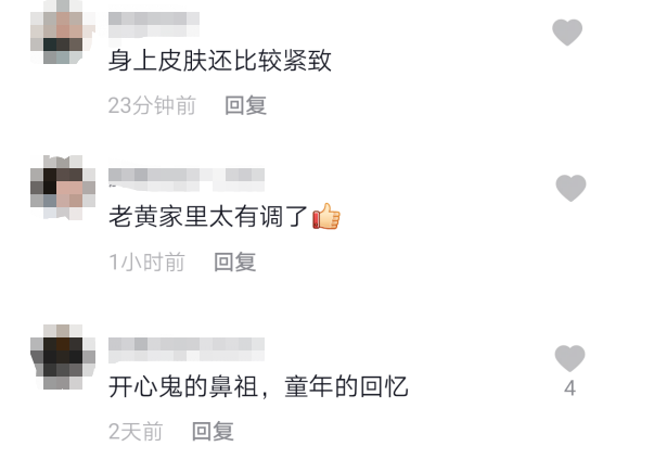 对此,有不少网友称赞黄百鸣身上皮肤紧致,房屋装修有格调,还有人表示黄百鸣的《开心鬼》让自己念念不忘,是自己的童年回忆。