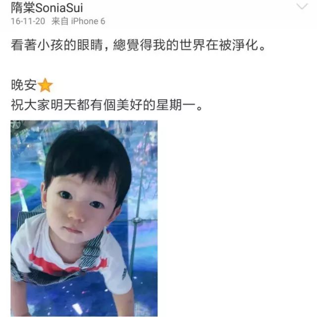 自从生了宝宝以后她也成为了一个孩奴,微博上晒的最多的就是自己的儿子。